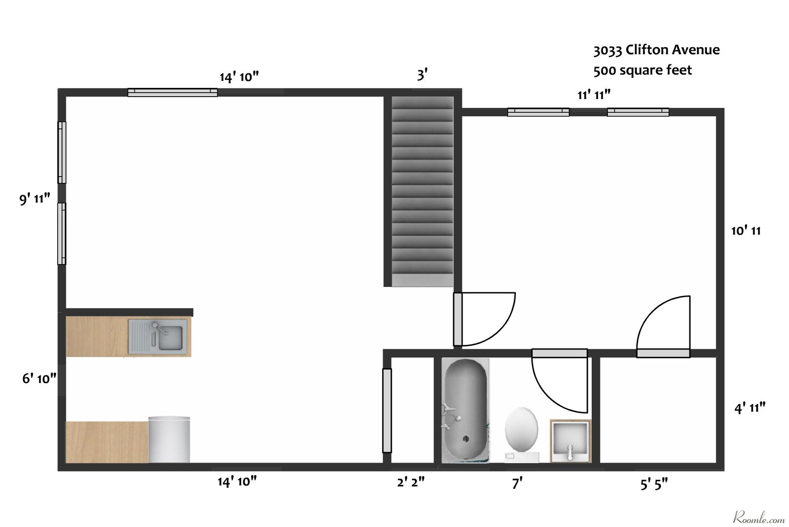 - Area, sq ft: 500.0 sq ft