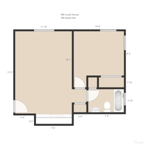 - Area, sq ft: 385.0 sq ft
